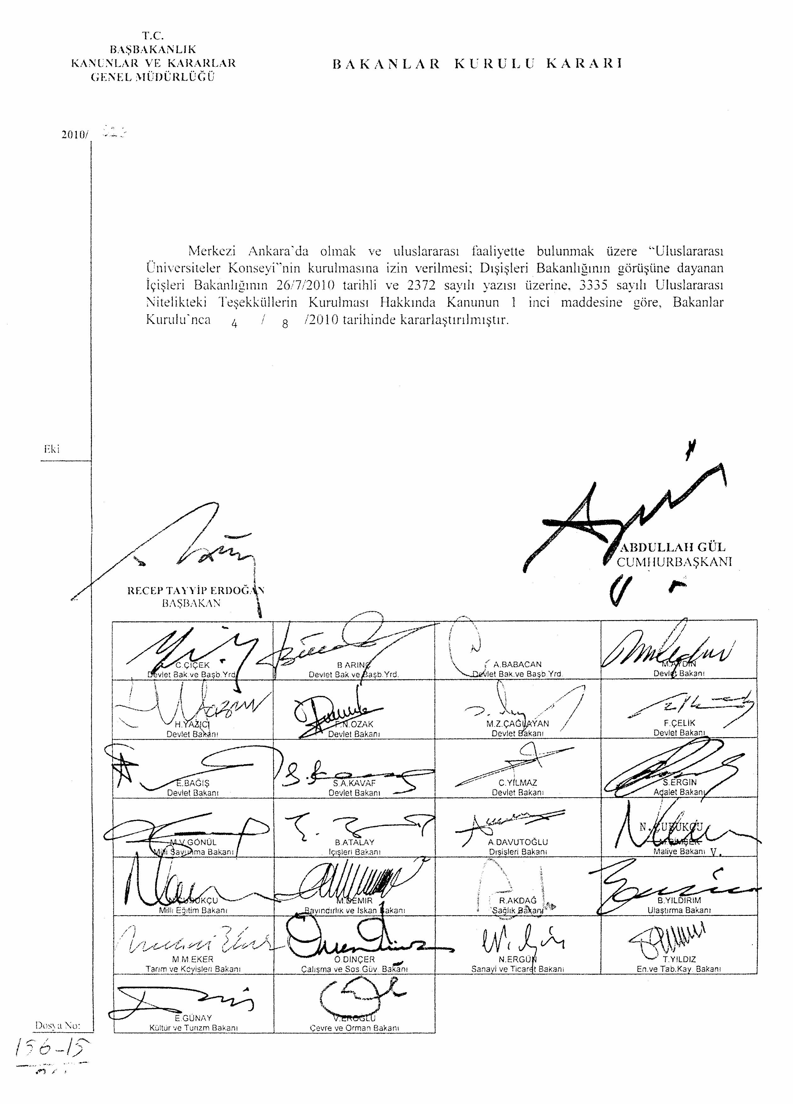 BAKANLAR KURULU KARARI