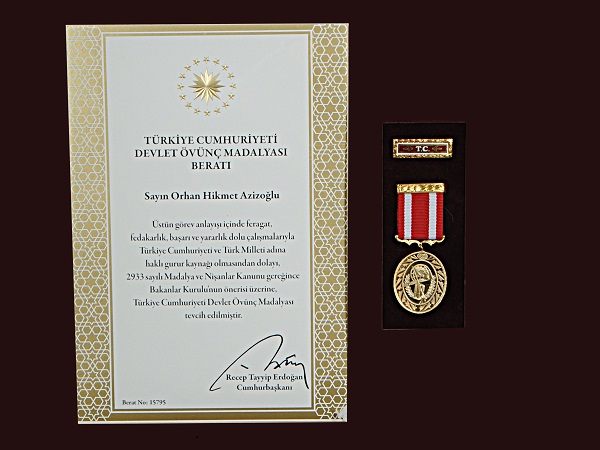 * Türkiye Cumhuriyeti Devlet Övünç Madalyası ve Beratı sahibi,